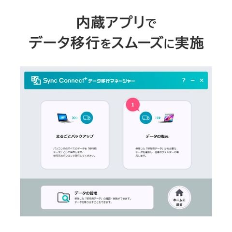 本商品は、データ移行アプリ「Sync Connect+ データ移行マネージャー」を内蔵したポータブルHDDです。