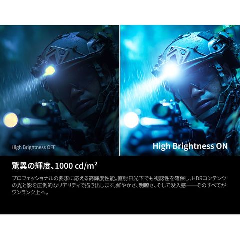 輝度(通常)250cd/m(100%APL)/450cd/m(Typ.)(10%APL)/1000cd/m(Typ.)(HDR3%APL)