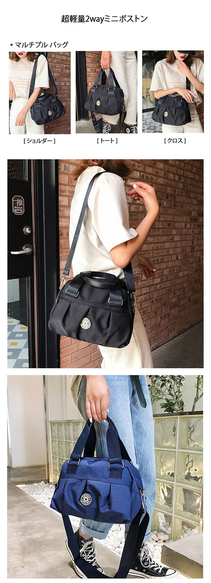 【ネイビー】超軽量2wayミニボストン | 手持ちでも肩から掛けてもOK♪