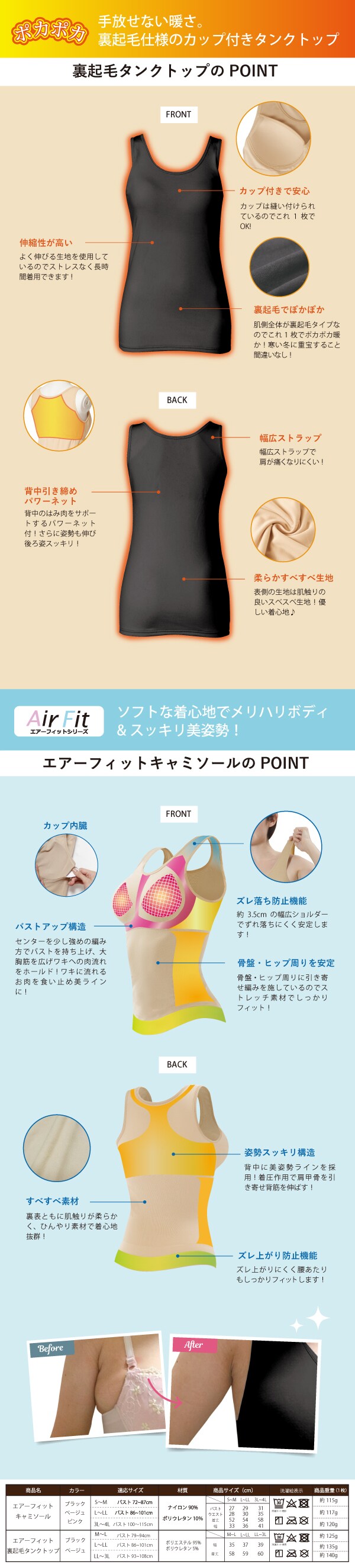 【色お任せ】美姿勢2点セット/エアーフィットキャミソールL-LL/裏起毛タンクトップL-LL | 家でも外でも姿勢をキレイに♪