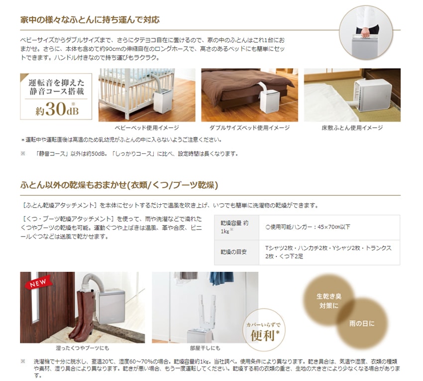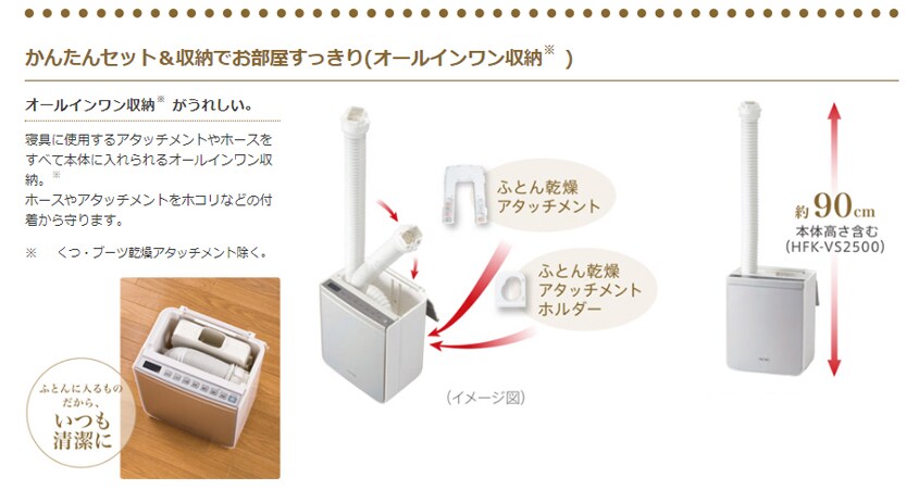 ・付属品:ふとん乾燥アタッチメント・くつ・ブーツ乾燥アタッチメント・ふとん乾燥アタッチメントホルダー