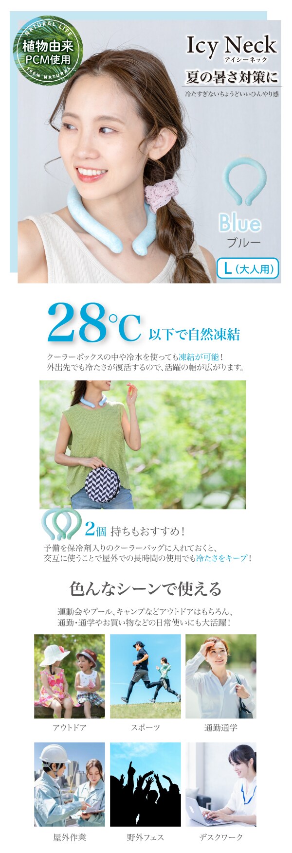 【Lサイズ/ブルー】Icy Neck アイシーネック | 夏の暑さ対策に!28℃以下で自然凍結 快適温度をキープ 繰り返し使える 節電対策