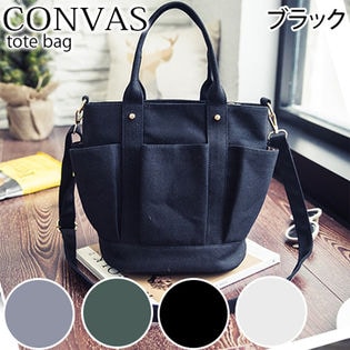 【ホワイト】マチたっぷり♪コンパクトキャンバストート | たくさんのポケットとコンパクトながらたっぷり入るので実用性も◎