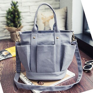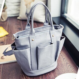 【グレー】マチたっぷり♪コンパクトキャンバストート | たくさんのポケットとコンパクトながらたっぷり入るので実用性も◎