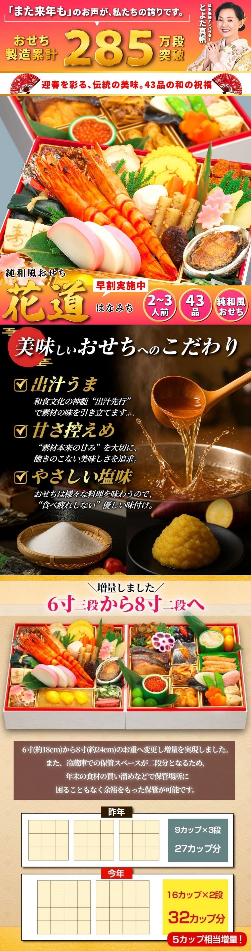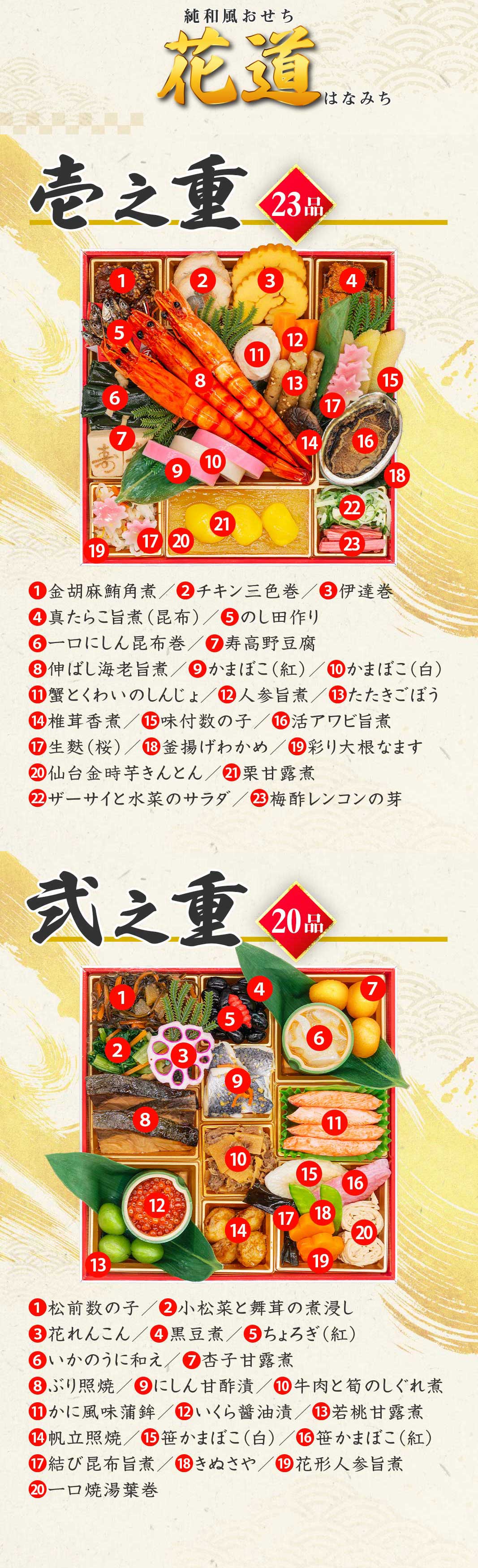 【12/30午前着】おせち「花道」(8寸/43品/2~3人前/純和風おせち二段重) | 厳選された食材を素材の美味しさそのままに、バランスよく盛り付けた本格和風おせち