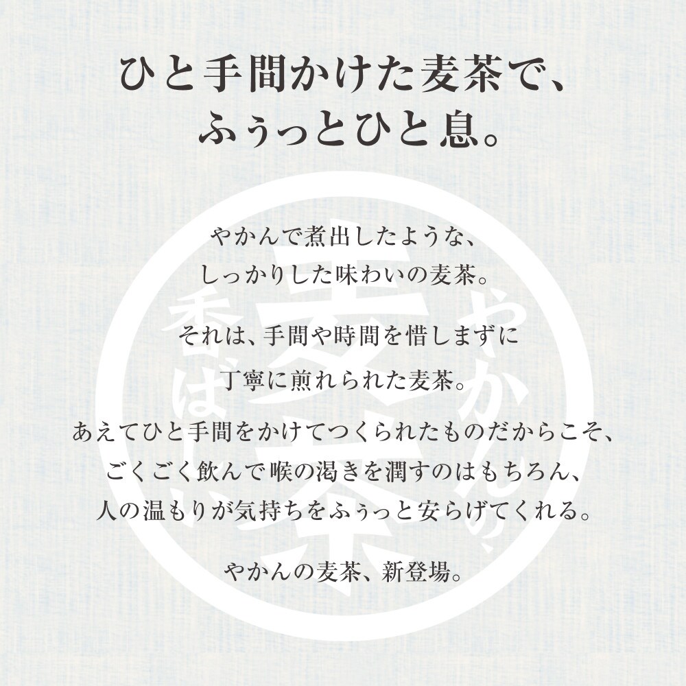 やかんで煮だした麦茶のような香ばしいかおりと味わい。カフェインゼロ。たっぷり650ml。