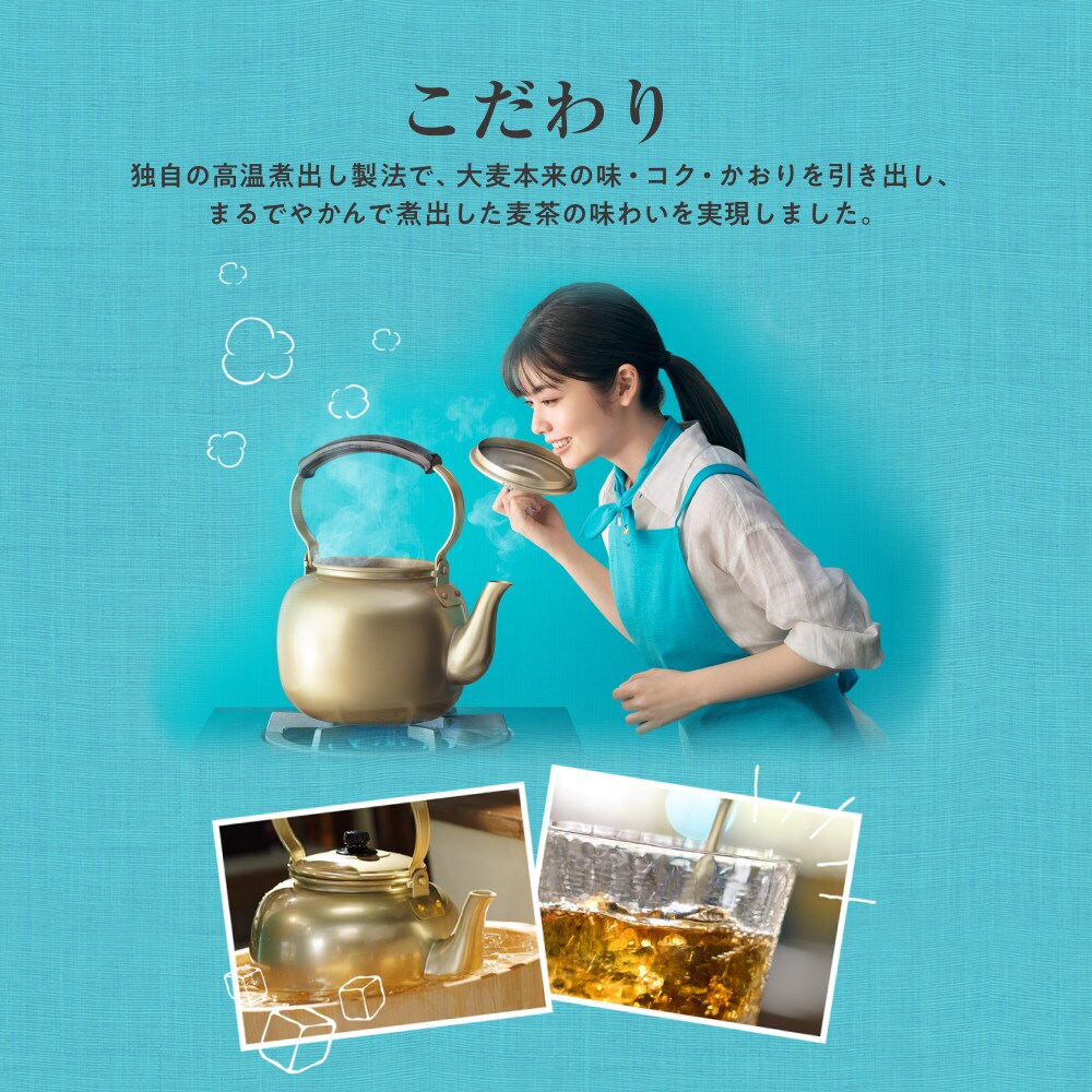 やかんで煮だした麦茶のような香ばしいかおりと味わい。カフェインゼロ。