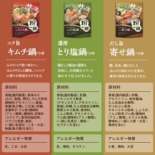 味は「旨寄せ鍋」と「濃厚とり塩鍋」と「コク旨キムチ鍋」の3種類を楽しめます。