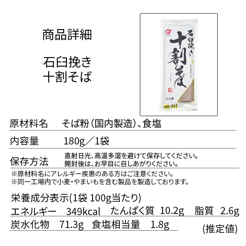 【4人前/180g×2袋】石臼挽き十割そば そば粉100% | しっかりとした歯ごたえ、つるりとしたのどごし、香り豊かな十割そば。そば湯まで美味しい。