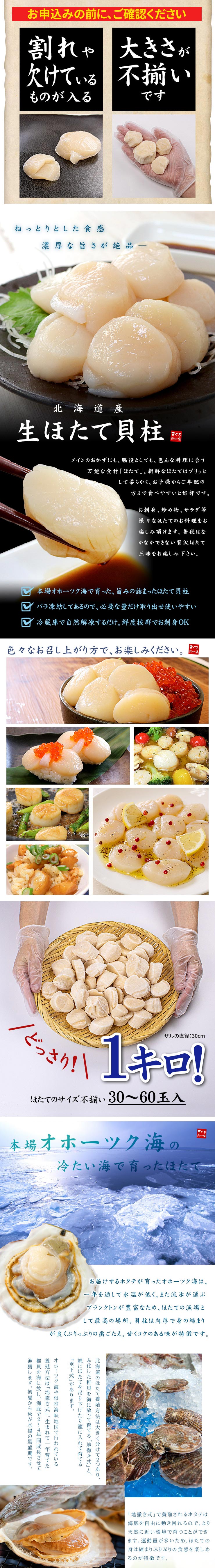 【1kg】北海道産 生ほたて貝柱 (割れ 欠け 不揃い) [ホタテ1kg]