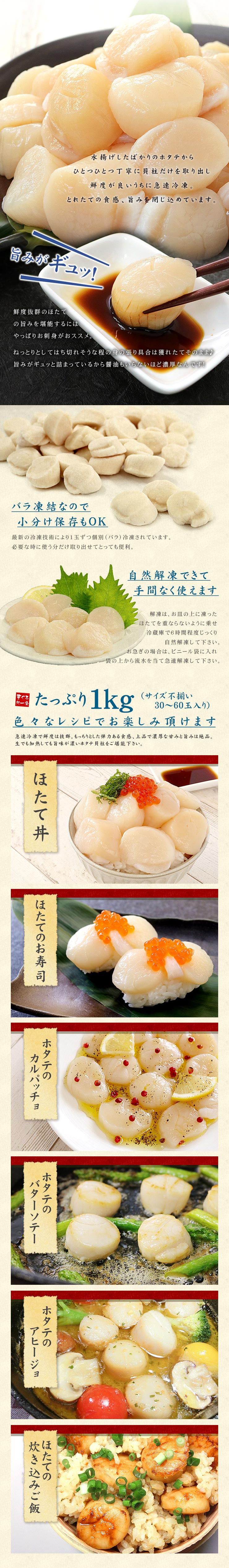 【1kg】北海道産 生ほたて貝柱 (割れ 欠け 不揃い) [ホタテ1kg] | バラ凍結だから小分けもOK!生ほたて食べ放題