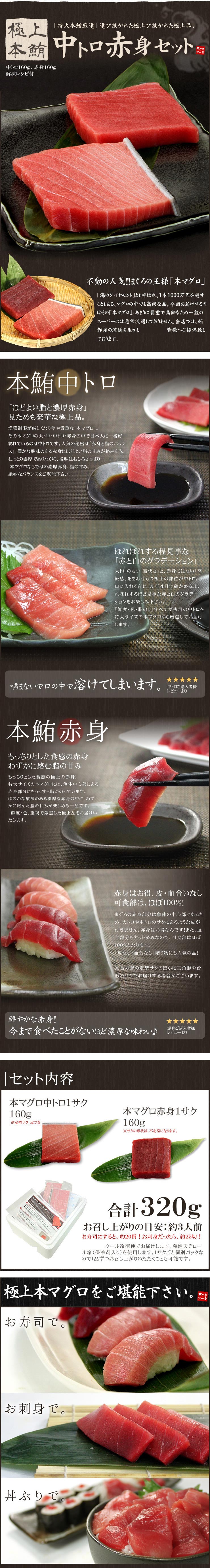 【320g】本マグロ中トロ赤身セット 解凍レシピ付 [[中赤セット]