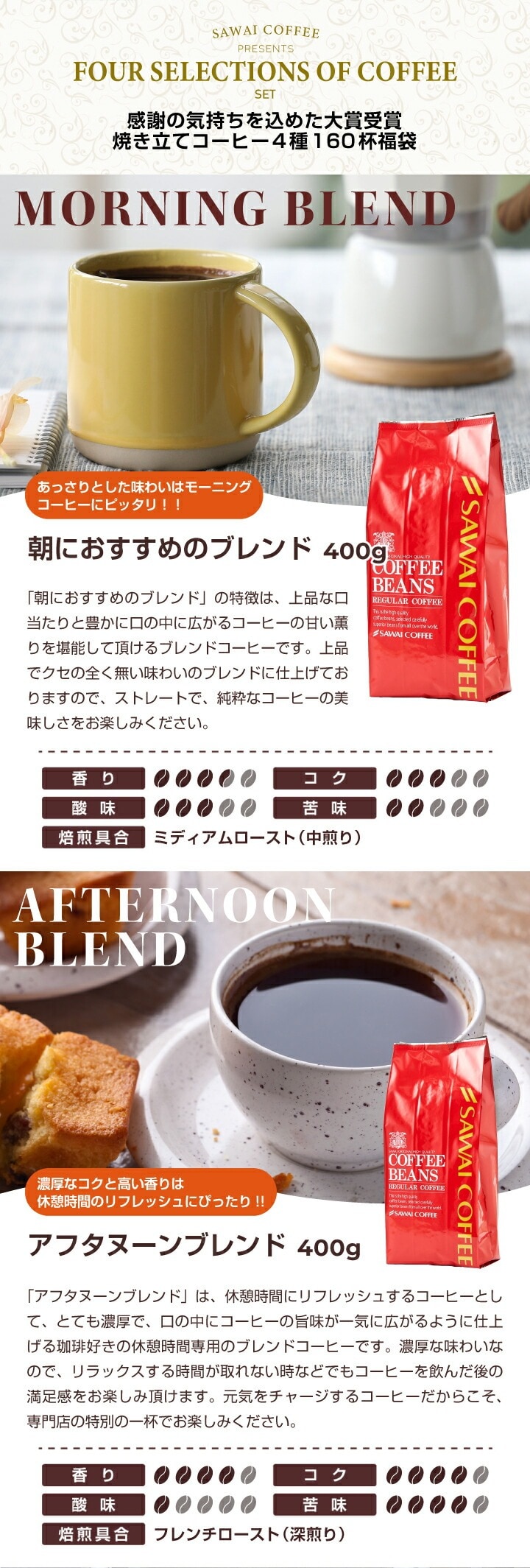 | 商品名 | 澤井珈琲の感謝を込めた4種類160杯分大賞受賞福袋 |