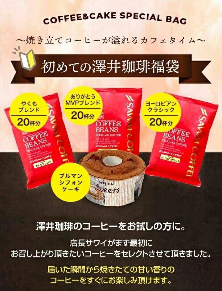 送料無料 初めてのコーヒーとスイーツ付き幸せの福袋(はつさわ/お試し/初回限定/コーヒー豆/珈琲豆/コーヒー粉/新生活応援/送料込)【中挽き】
