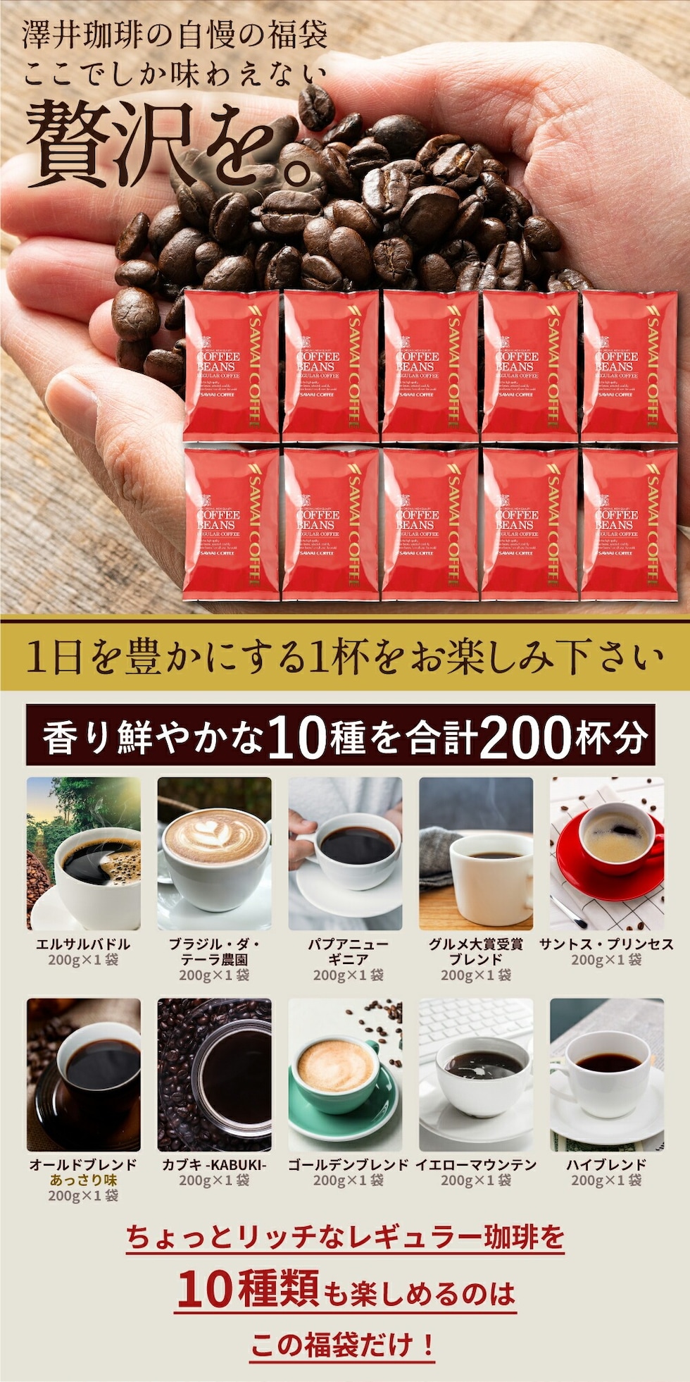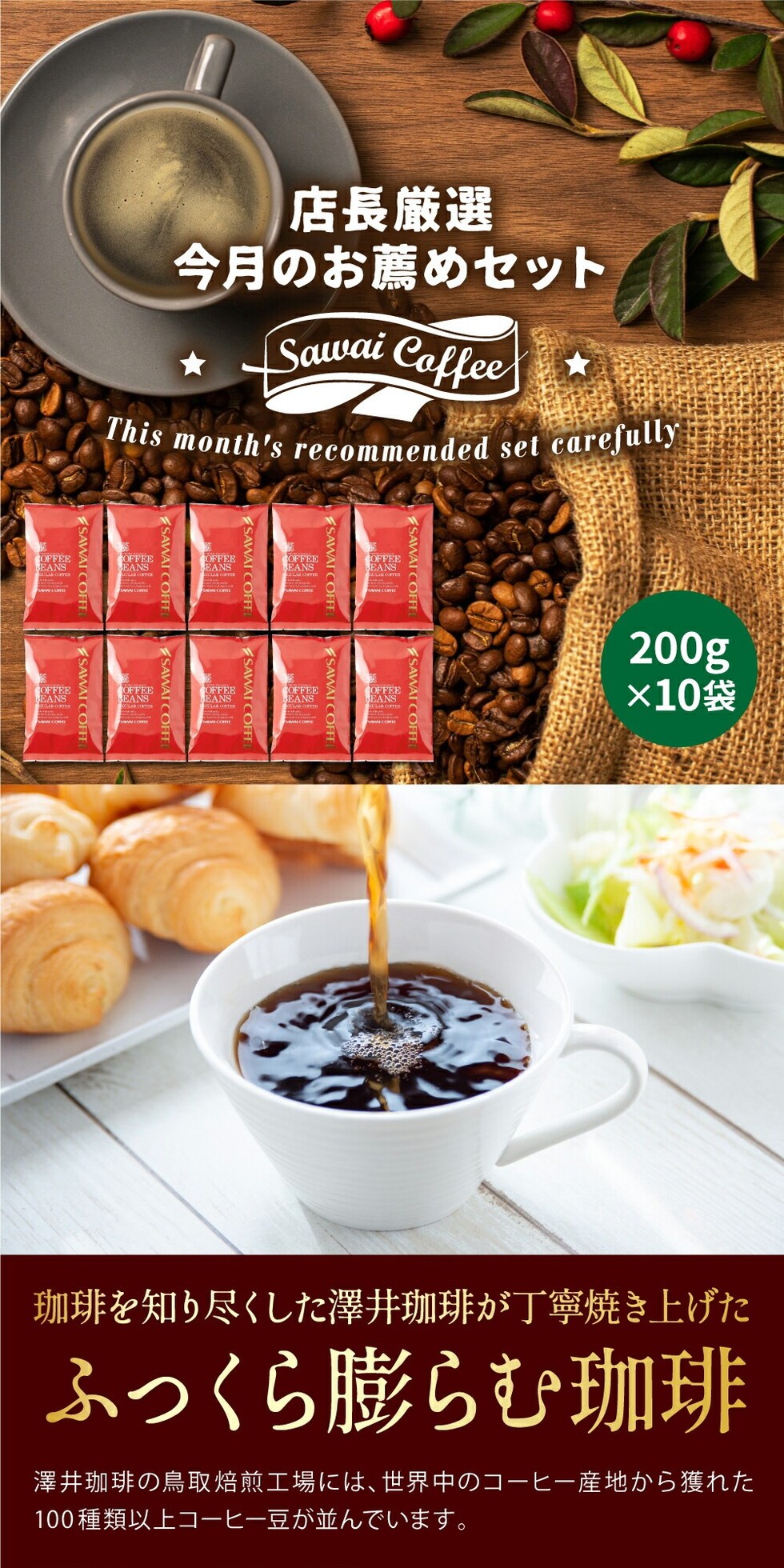 【中挽き】焙煎したて コーヒー豆 2kg 珈琲豆 送料無料 コーヒー 福袋 大容量 200gx10袋 コーヒー専門店 200杯分 飲み比べ セット 1月のおすすめレギュラーコーヒー 澤井珈琲