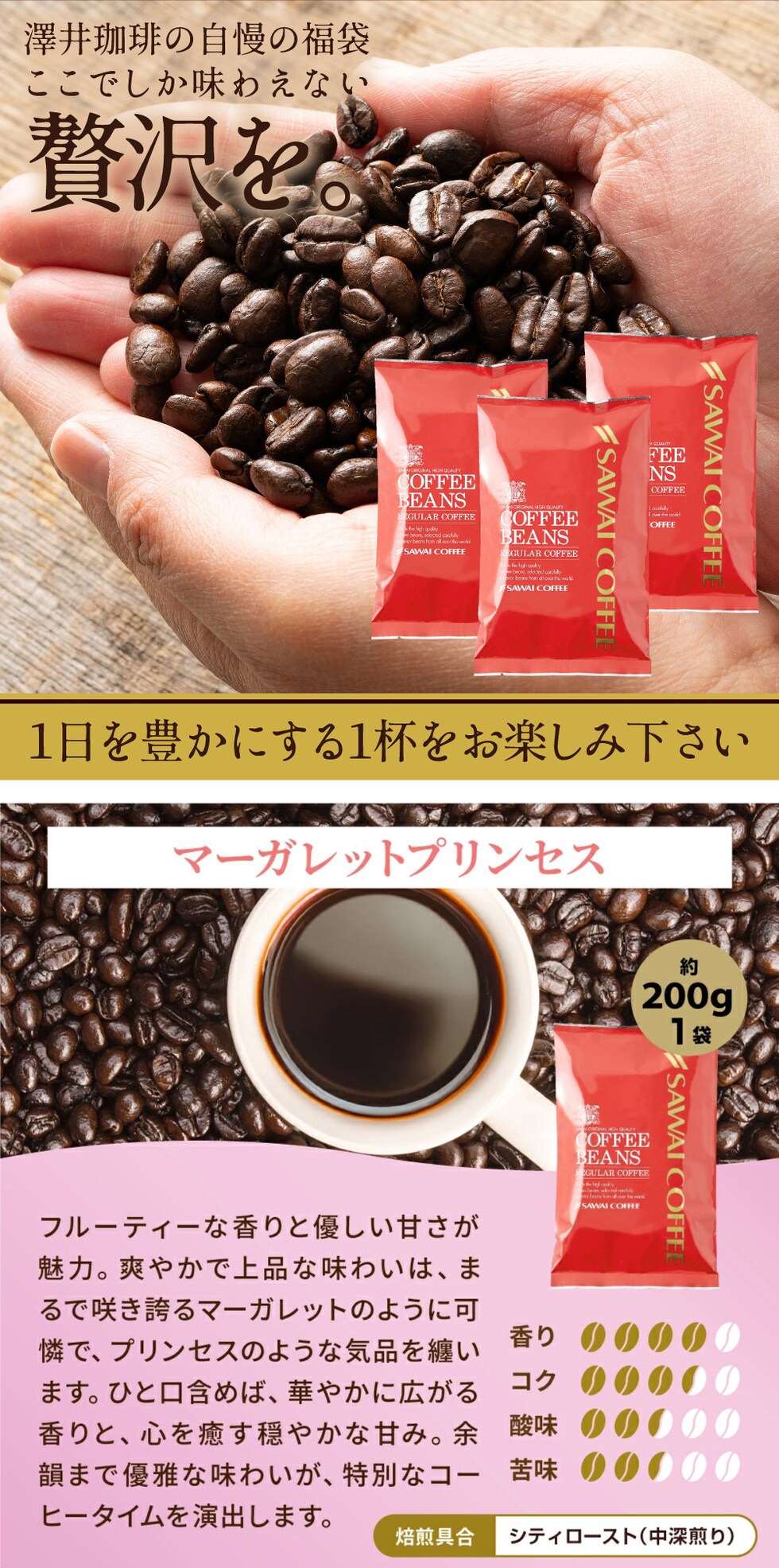 【豆のまま】焙煎したて コーヒー豆 600g 送料無料 コーヒー 福袋 お試し 200gx3袋 コーヒー専門店 60杯分 飲み比べ セット 7月のおすすめレギュラー福袋 澤井珈琲