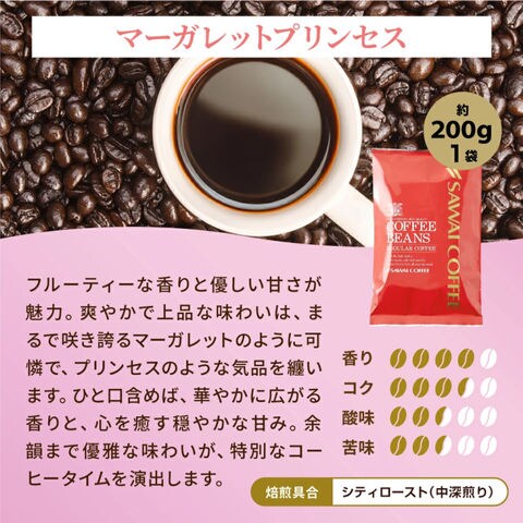 | 内容量 | ・マーガレットプリンセス 200g×1袋 ・アフリカンムーンブレンド 200g×1袋 ・アイスコーヒーdeマンデリン 200g×1袋 |