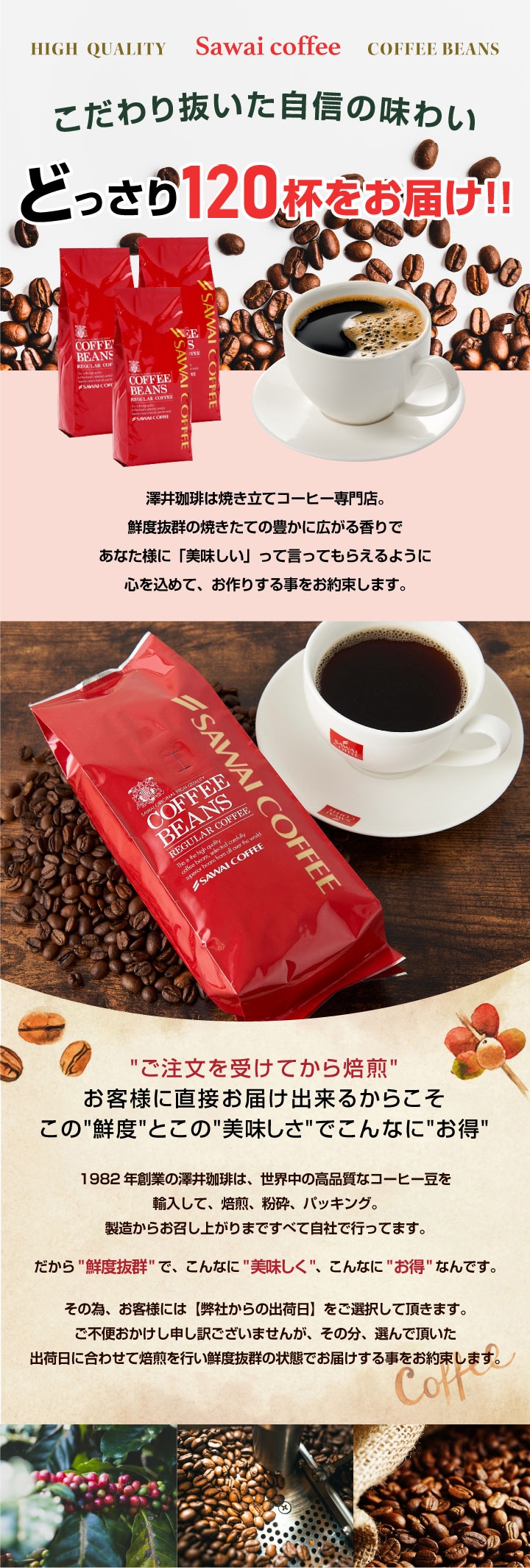 【豆のまま】 焙煎したて コーヒー豆 1.2kg 珈琲豆 送料無料 コーヒー 福袋 大容量 400gx3袋 コーヒー専門店 120杯分 セット 春限定 スプリングブレンド 澤井珈琲