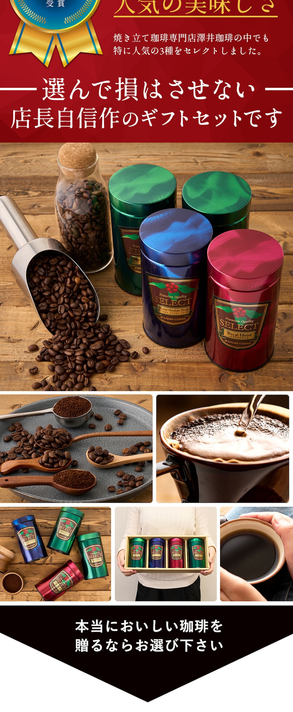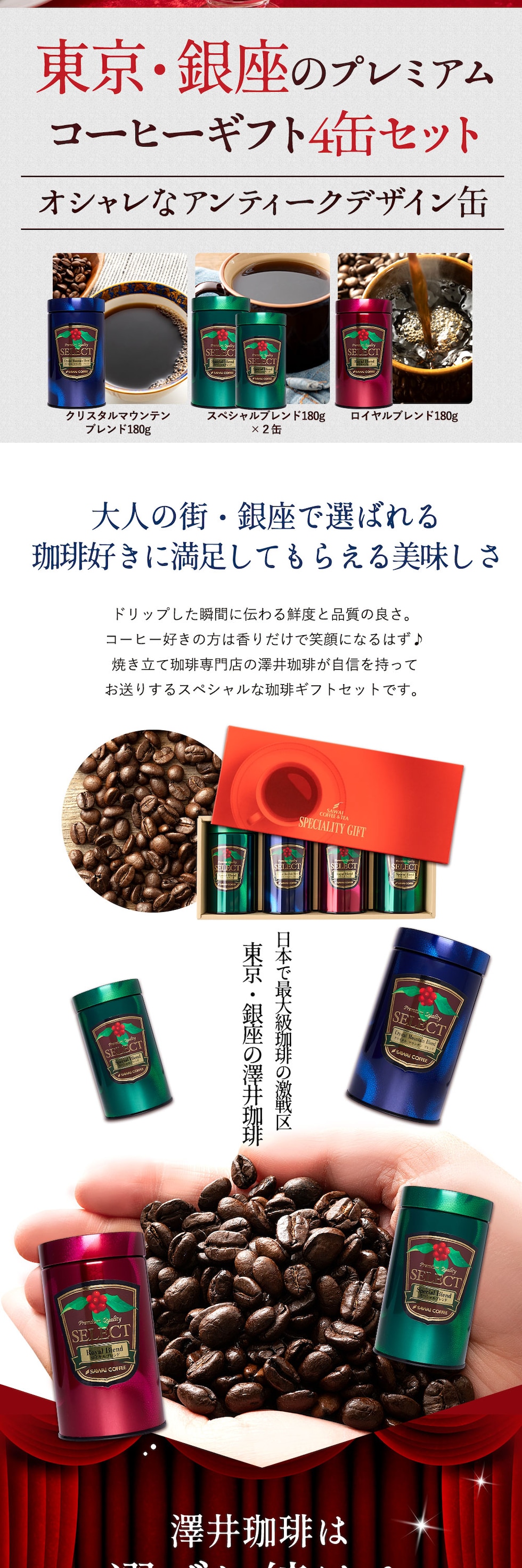 お歳暮 コーヒーギフト 送料無料 コーヒー専門店のプレミアム180g4缶ギフトセット【中挽き】※ラッピング無料 コーヒー豆 コーヒー ギフト セット 詰め合わせ セット プレゼント おしゃれ かわいい インスタ映え 贈り物 粉 豆 送料込 内祝い プレゼント ギフトセット 贈答品 御歳暮 冬ギフト