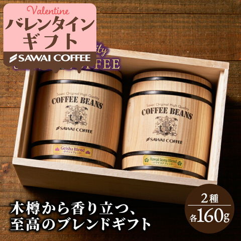バレンタイン 【中挽き】コーヒー粉 送料無料 珈琲粉 ゲイシャ ブレンド ハワイコナ ブレンド 160g×2樽 ギフト 焙煎したて 福袋 大容量 飲み比べ 澤井珈琲 冬ギフト