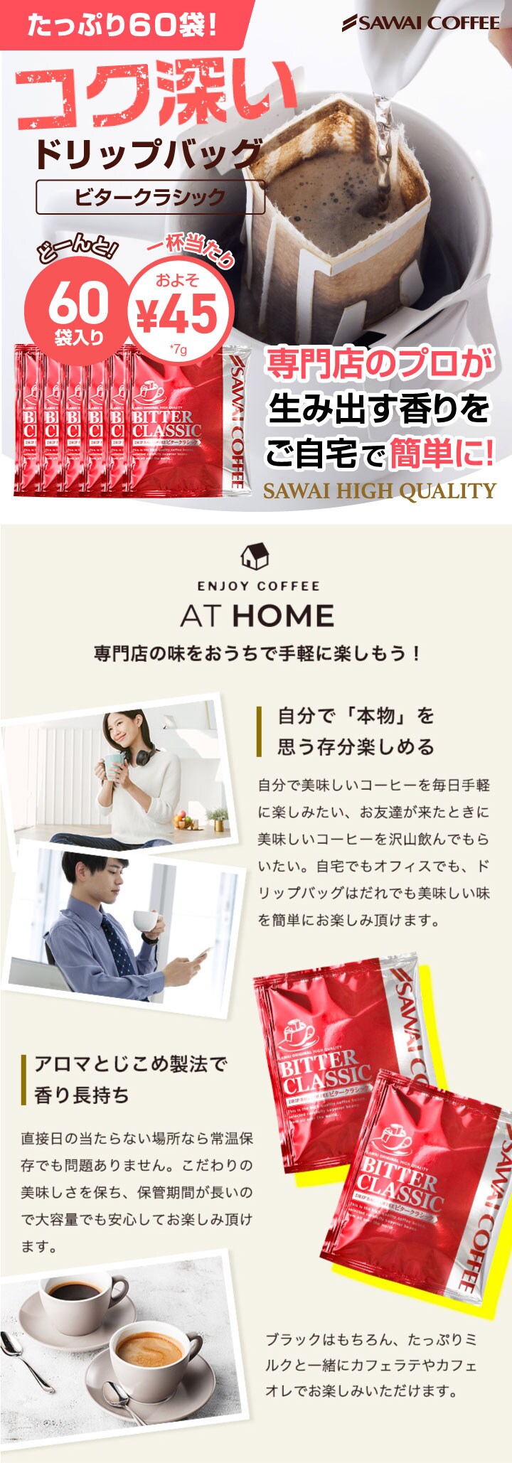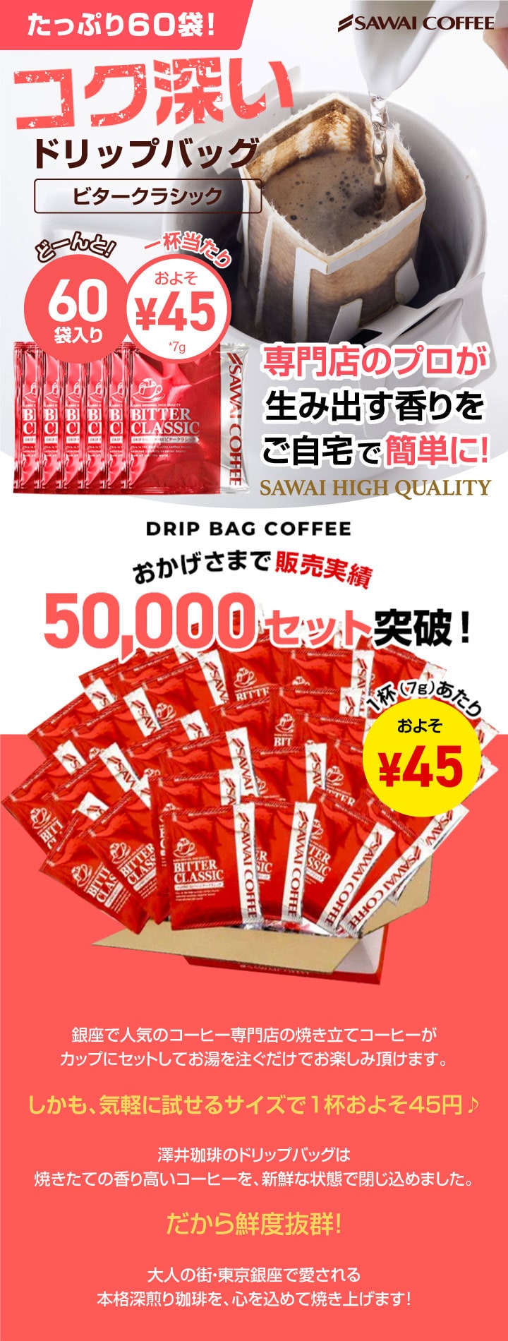 コーヒー ドリップコーヒー 60杯 ドリップ ドリップパック ドリップバッグ 60 珈琲 60袋 個包装 7g 大量 澤井珈琲 ビタークラシック60杯福袋