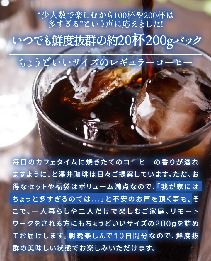 | 商品名 | 受け取り便利!澤井の200gレギュラーアイスコーヒー |