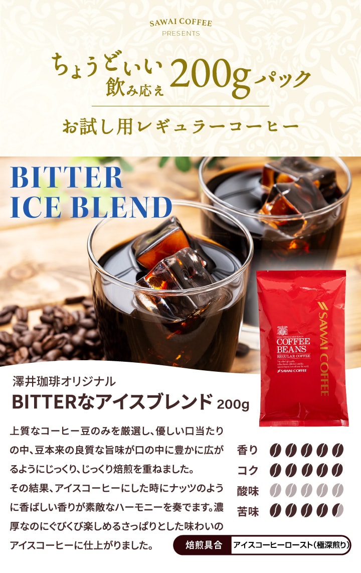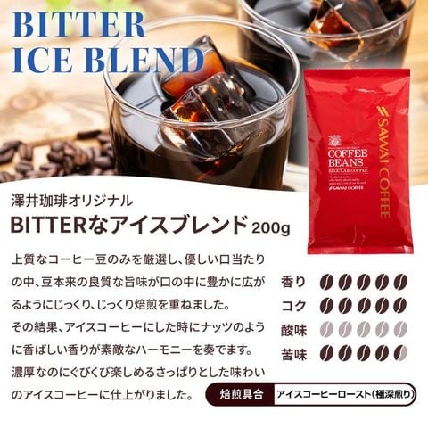 送料無料 コーヒー 珈琲 コーヒー豆 水出し珈琲 "芳醇にコクひろがるアイスコーヒー" 【豆のまま】澤井珈琲 BITTERなアイスブレンド 200gビターな苦味 コク深い スッキリ飲める ゴクゴク楽しめる