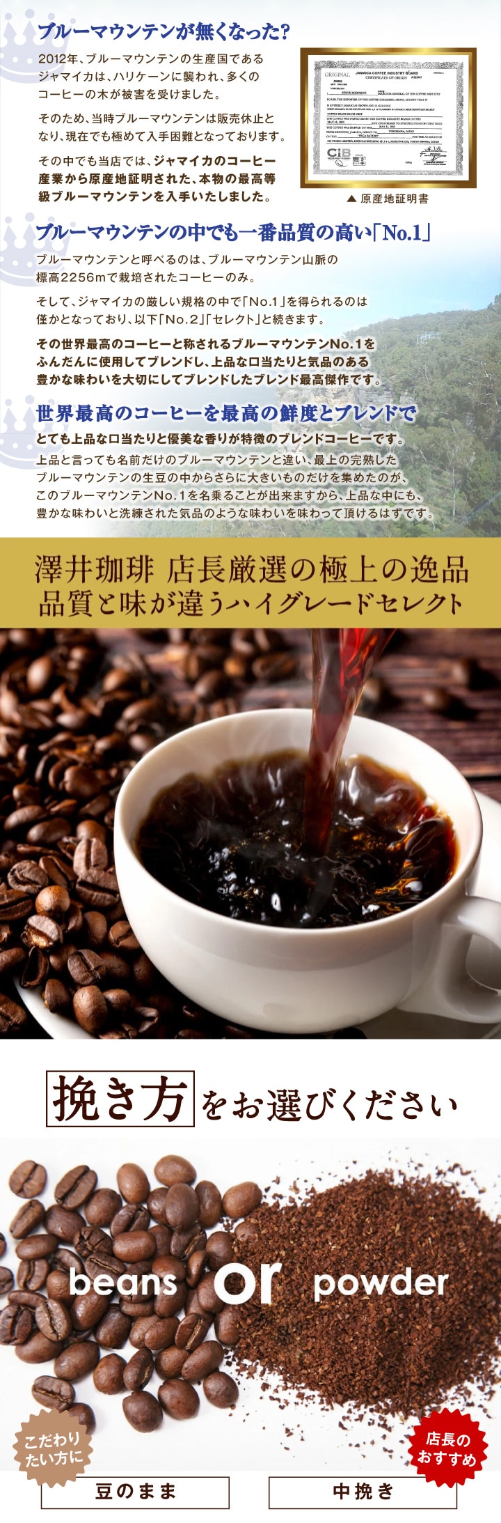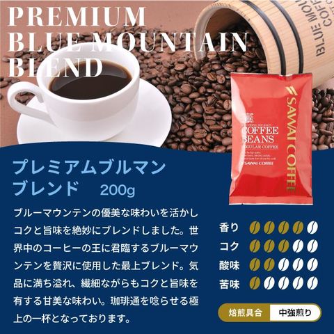 | 産地 | 【ブルーマウンテンNo.1ブレンド/プレミアムブルーマウンテンブレンド】 ジャマイカ、ブラジル、他 【ブルマンビンテージ】コロンビア、ブラジル、他 |