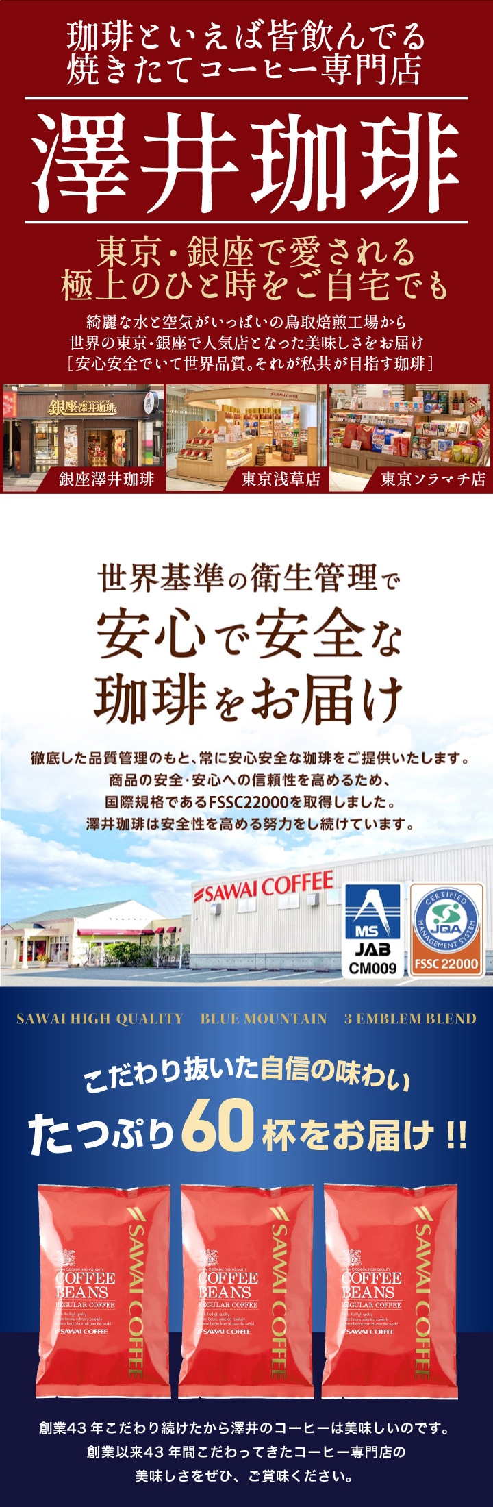 【中挽き】コーヒー コーヒー豆 珈琲豆 "上品な香り、極上の一杯" 澤井珈琲 ブルーマウンテン 3種 飲み比べ 60杯分 福袋 200g×3袋 なめらか 雑味なし