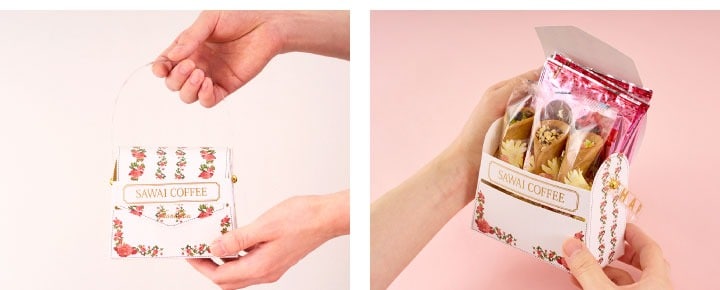 | 原材料 | 【ドリップバッグ】コーヒー豆 【花彩つむぎ フルーツ】 小麦粉(国内製造)、砂糖、鶏卵、ショートニング、粉糖(砂糖、コーンスターチ)、麦芽糖、脱脂粉乳、ドライストロベリー、ドライマンゴー、ドライキウイ、蜂蜜、植物油脂/香料、膨張剤、レシチン(大豆由来)、酸化防止剤(ビタミンE)、クエン酸、着色料(赤40、青1、黄4)、保存料(メタ重亜硫酸Na)、(一部に小麦を含む) 【花彩つむぎ チョコ】 小麦粉(国内製造)、砂糖、液卵、ショートニング、粉糖(砂糖、コーンスターチ)、麦芽糖、ココアパウダー、アーモンド、植物油脂、脱脂粉乳、カカオマス、蜂蜜/膨張剤、レシチン、酸化防止剤(ビタミンE)、(一部に小麦・卵・乳成分・大豆・アーモンドを含む) 【花彩つむぎ 抹茶】 小麦粉(国内製造)、砂糖、液卵、ショートニング、粉糖(砂糖、コーンスターチ)、麦芽糖、抹茶、脱脂粉乳、小豆、蜂蜜、植物油脂/膨張剤、レシチン、酸化防止剤(ビタミンE)、(一部に小麦・卵・乳成分・大豆を含む) |