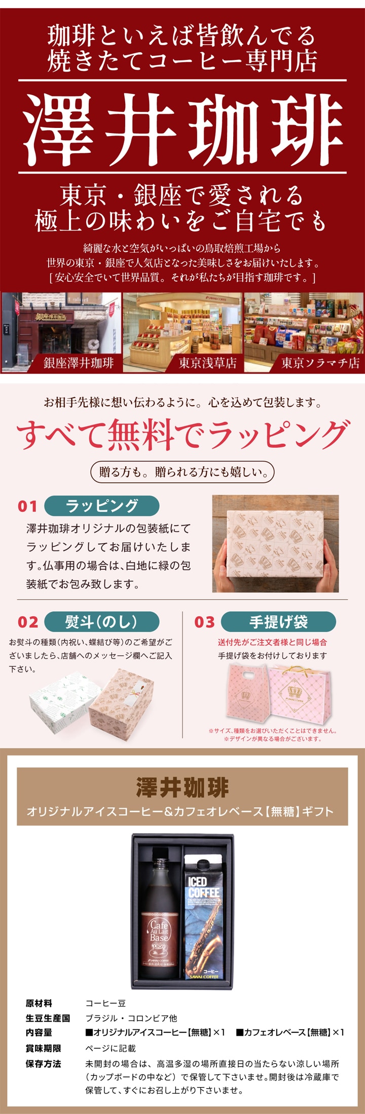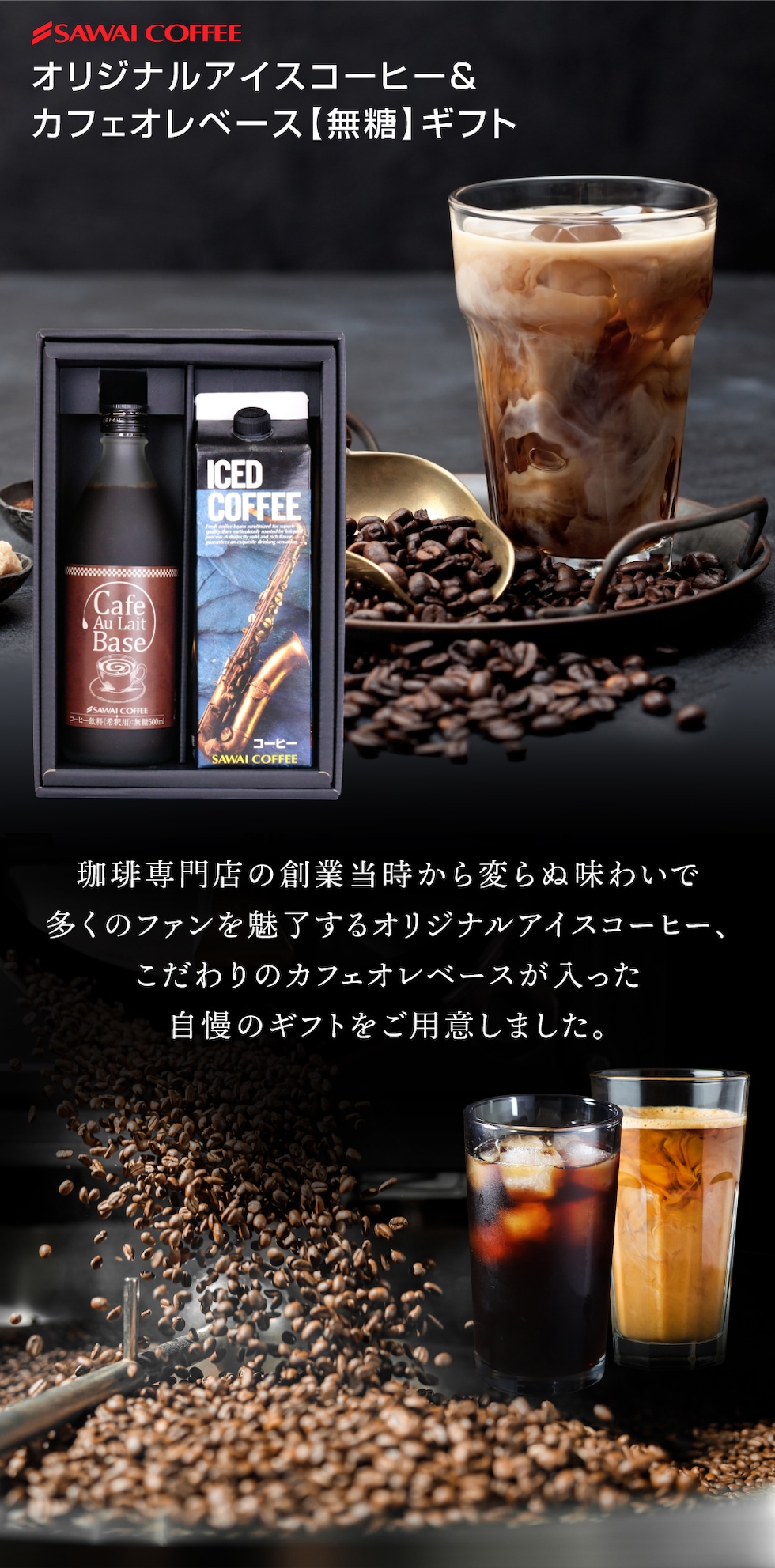ホワイトデー 送料無料 コーヒーギフト コーヒー 珈琲 プレゼント "本格派アイス&カフェオレベースギフト" 澤井珈琲 カフェラテベース 500ml×1本 アイスコーヒー 1000ml×1本 無糖 家族みんな ギフト