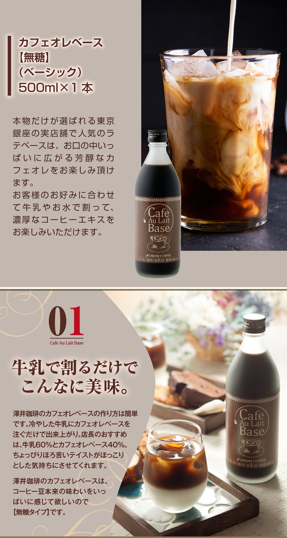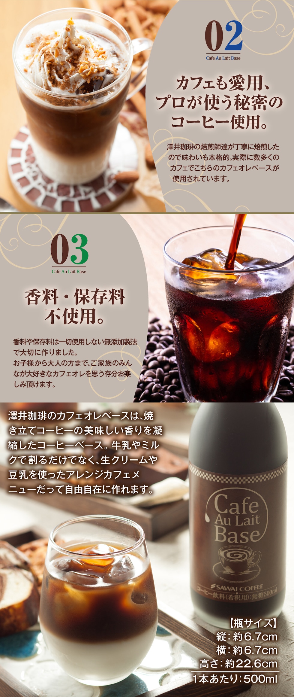 | 内容量 | ・カフェオレベース無糖 500ml×1本 ・オリジナルアイスコーヒー無糖 1000ml×1本 |