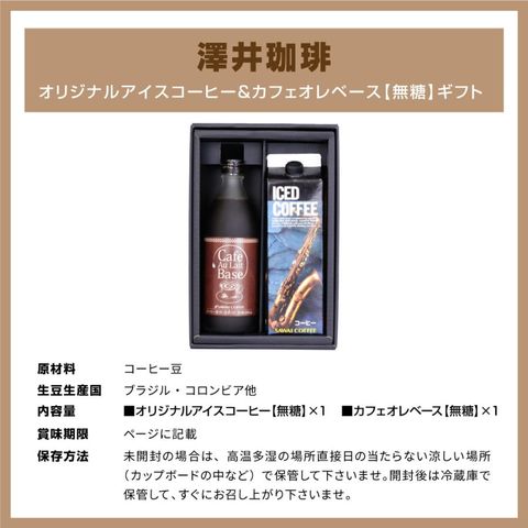 | 商品名 | オリジナルアイスコーヒー&カフェオレベース【無糖】ギフト |