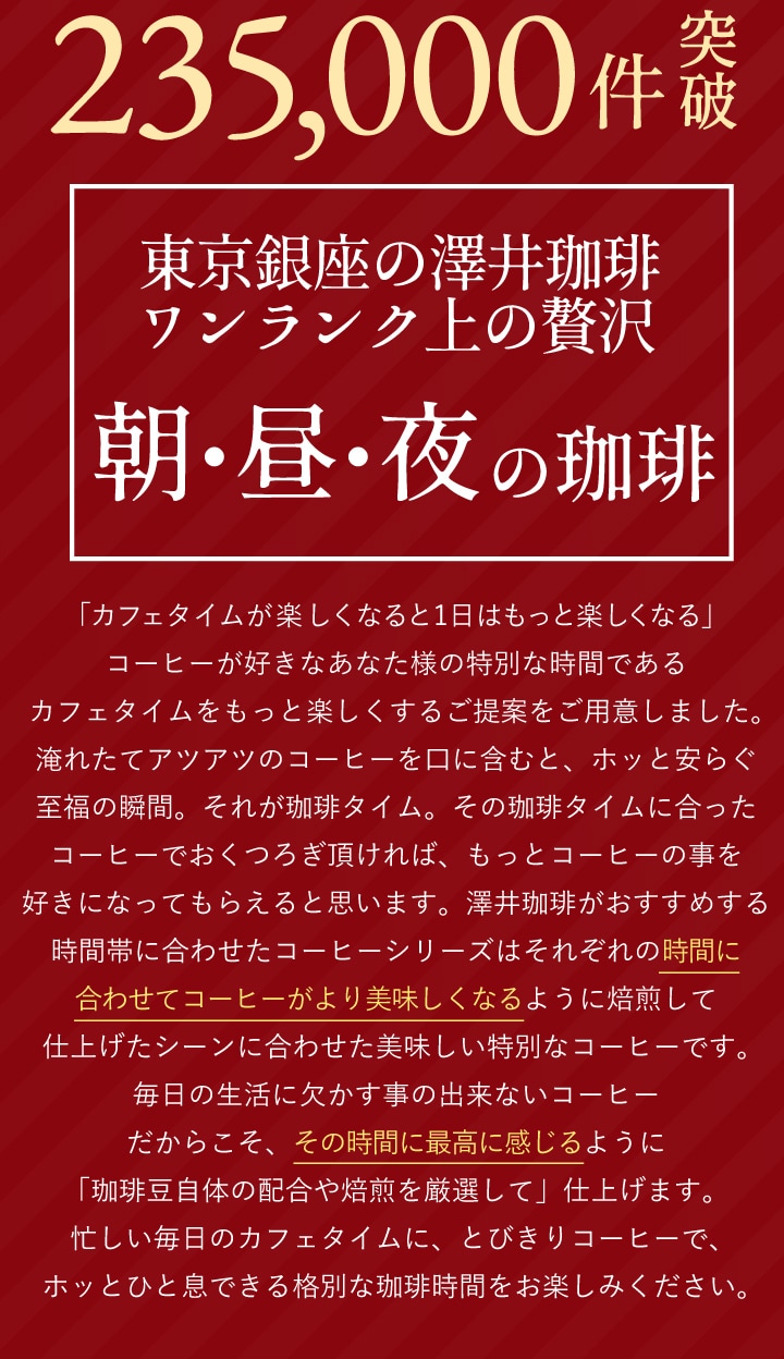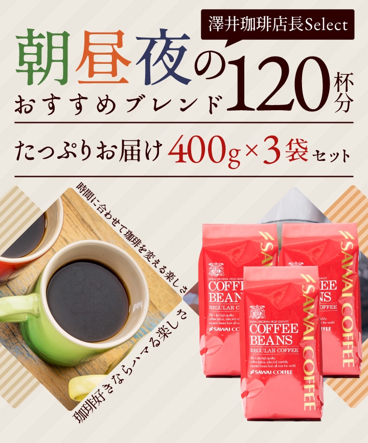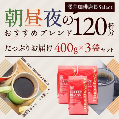 | 商品名 | 朝昼夜で楽しむ!澤井珈琲の120杯分ブレンドセット 1.2kg |