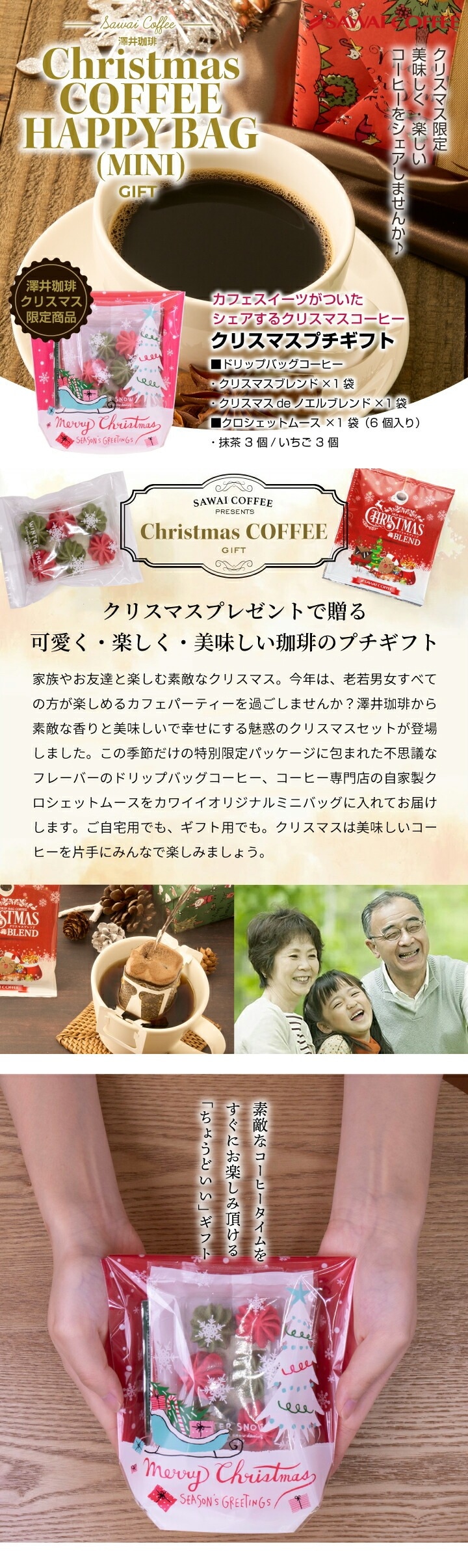 澤井珈琲 クリスマス限定 コーヒー スイーツ付き ハッピーバッグミニ ギフト ドリップバッグ 個包装 8g クロシェットムース プレゼント プチギフト スイーツ お菓子 コーヒーに合う 澤井スイーツ ※冷凍便同梱不可