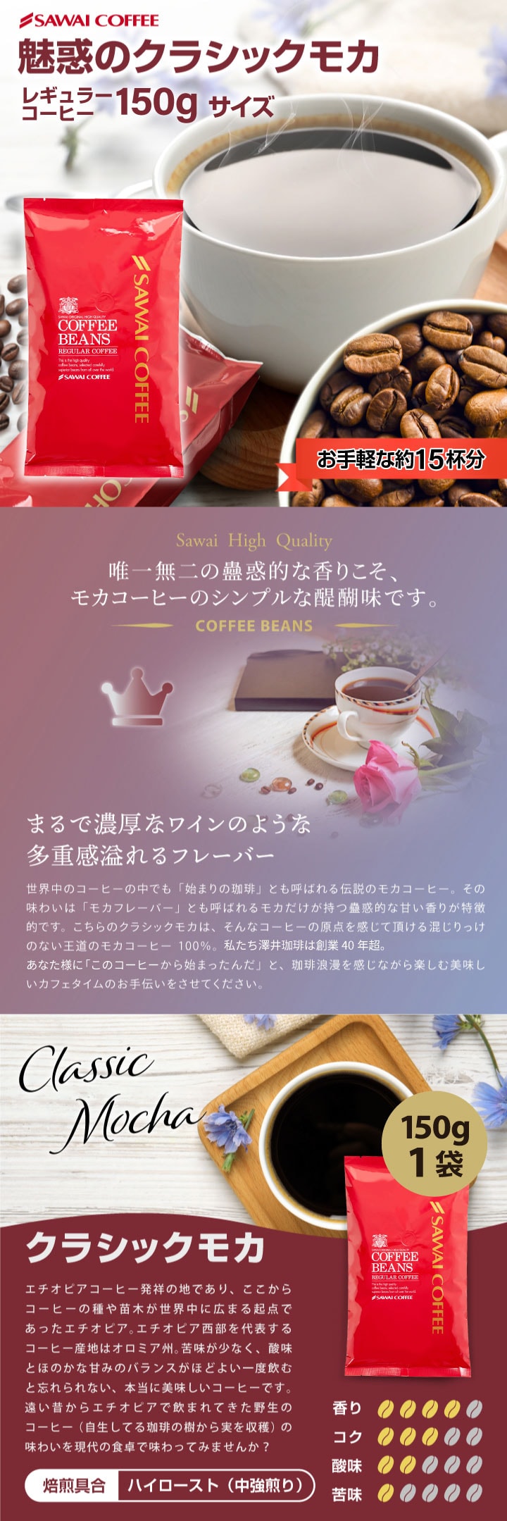 【追跡ゆうメール便】豆のまま 1000円ポッキリ 送料無料 お試し コーヒー豆 150g 珈琲豆 コーヒー 1000円ぽっきり 15杯分 セット クラシックモカ 澤井珈琲