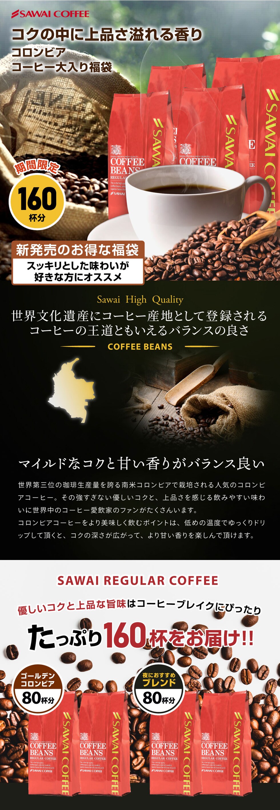 コーヒー コーヒー豆 1.6kg 珈琲 珈琲豆 お試し コーヒー粉 粉 コロンビアコーヒー 豆 コロンビアスペシャル大入りコーヒー 福袋【中挽き】 送料込