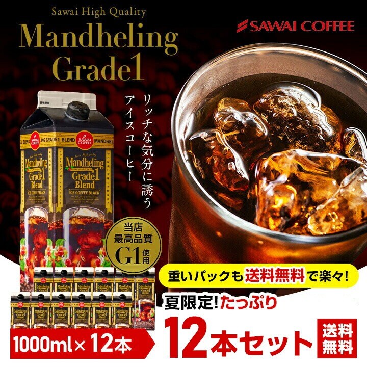 アイスコーヒー リキッド 紙パック 無糖 12本 お得 澤井珈琲 高級 送料無料 マンデリン グレードワン 1000ml 12本セット ※同梱不可