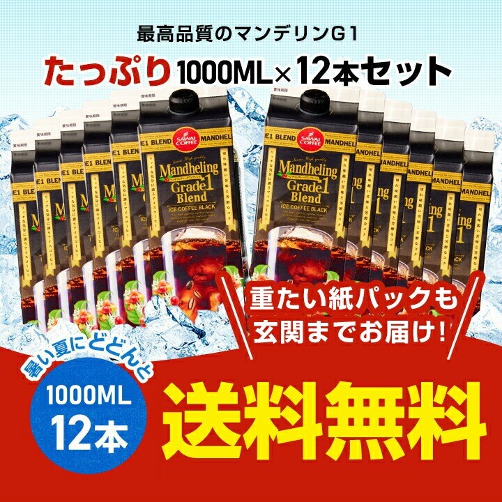 | 内容量 | アイスコーヒーリキッド無糖(1000ml紙パック) マンデリン グレードワン×12本 |