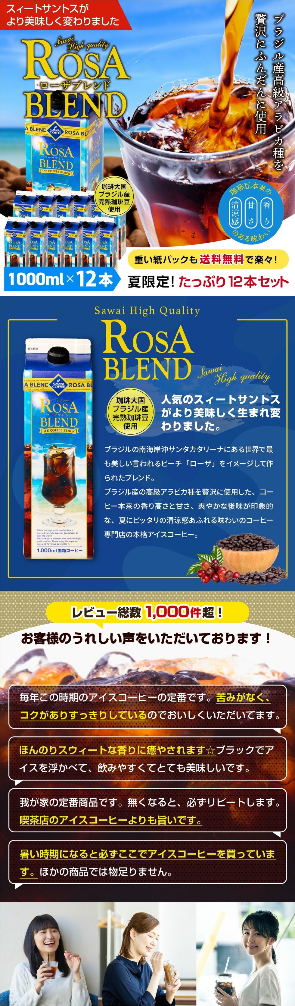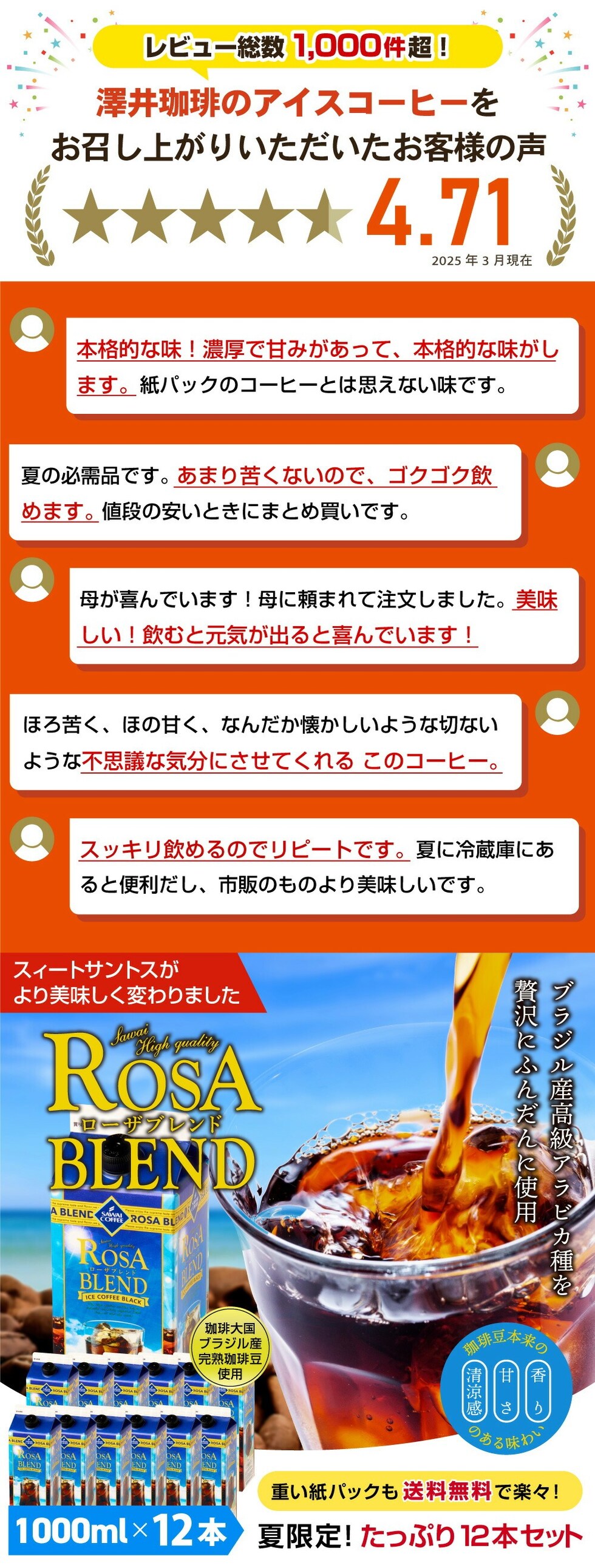 | 商品名 | 澤井珈琲 夏限定 無糖アイスコーヒー ローザブレンド 12本セット |