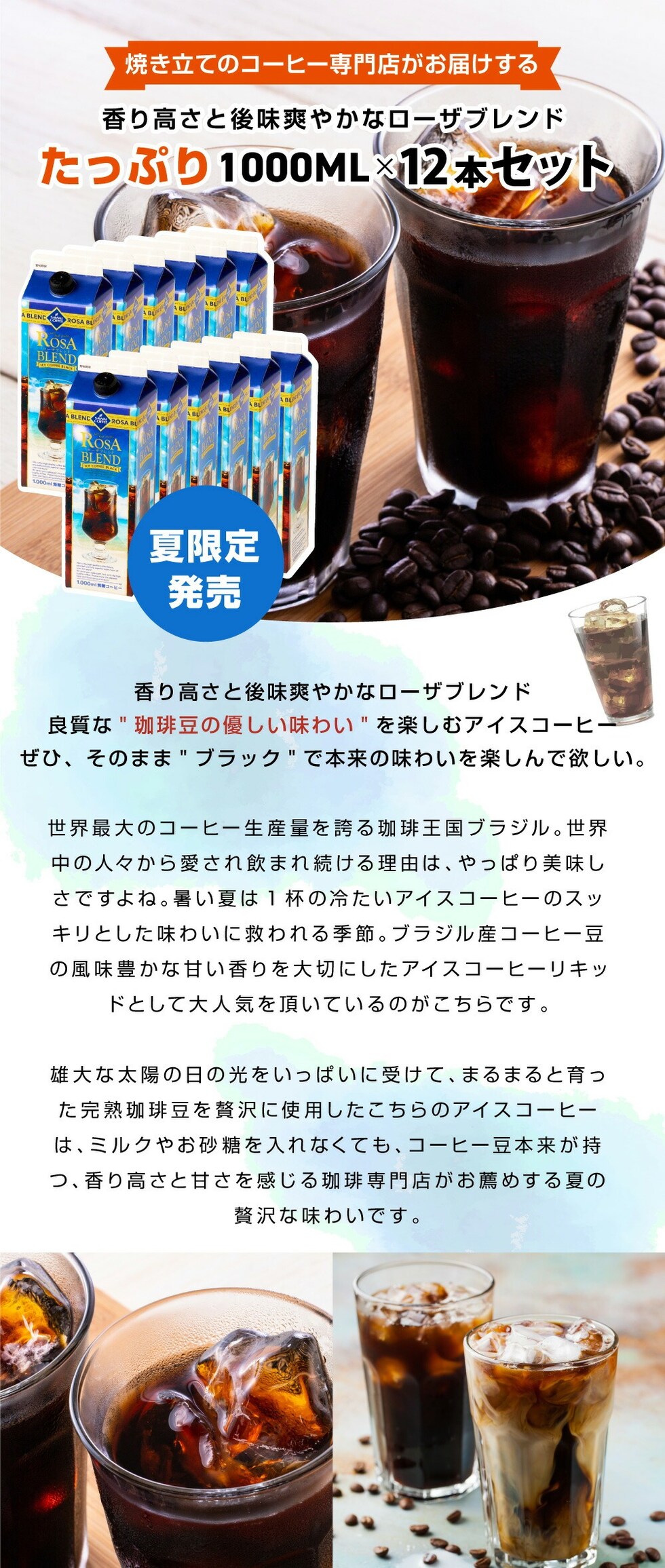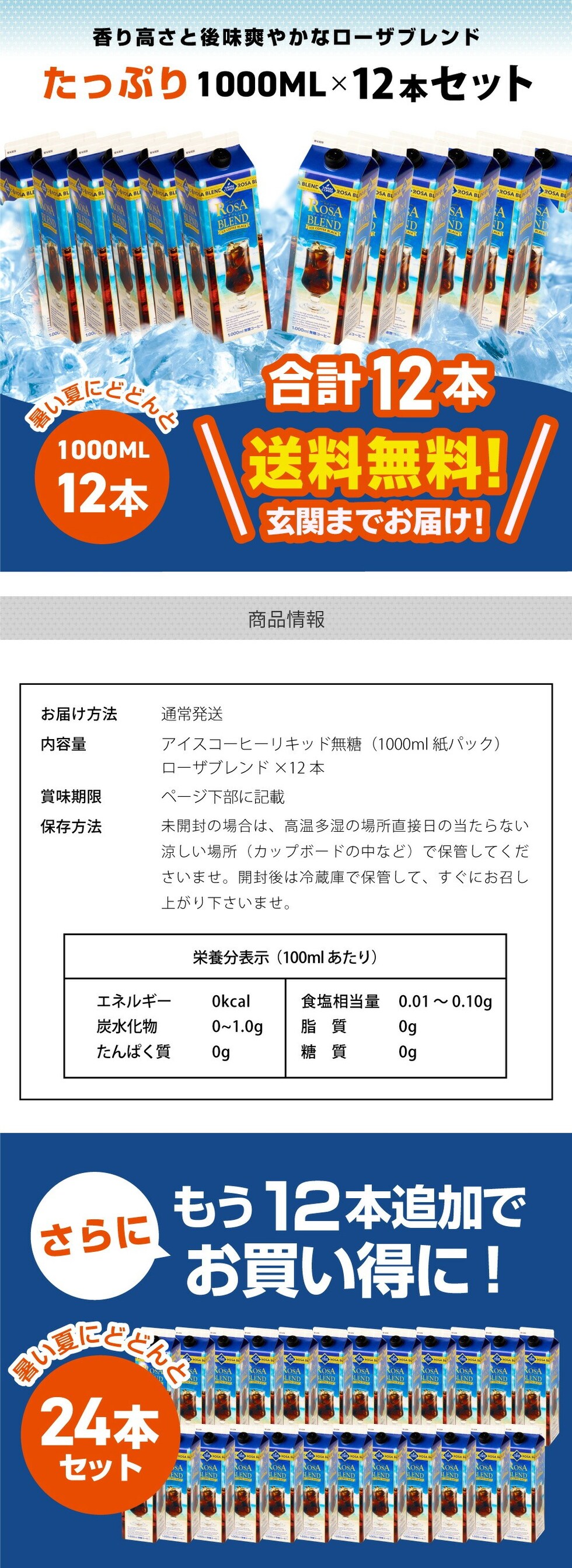 | 内容量 | アイスコーヒーリキッド無糖(1000ml紙パック) ローザブレンド×12本 |