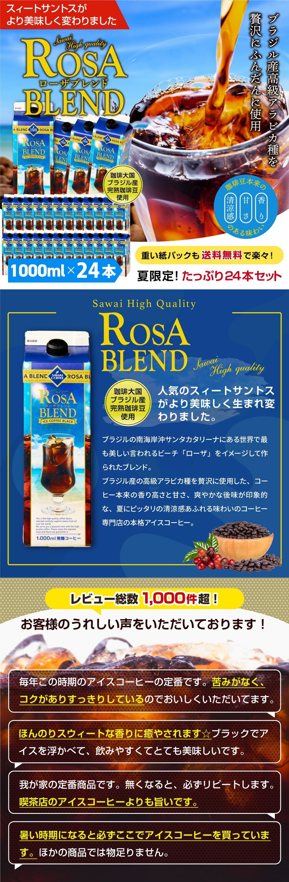 | 商品名 | 夏季限定ローザブレンド 1000ml 無糖アイスコーヒー |
