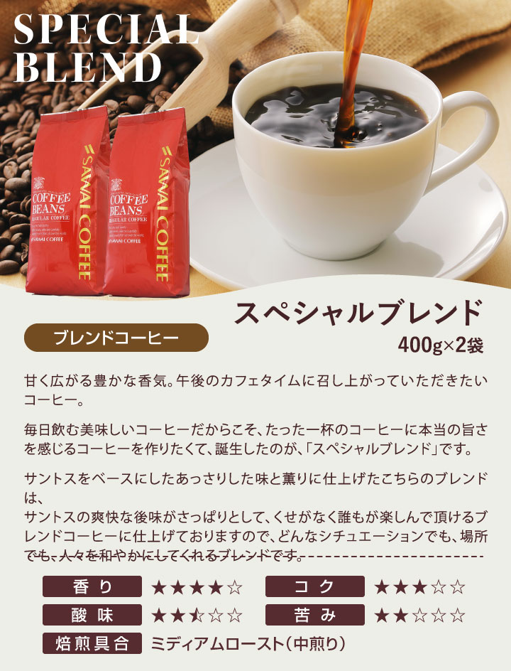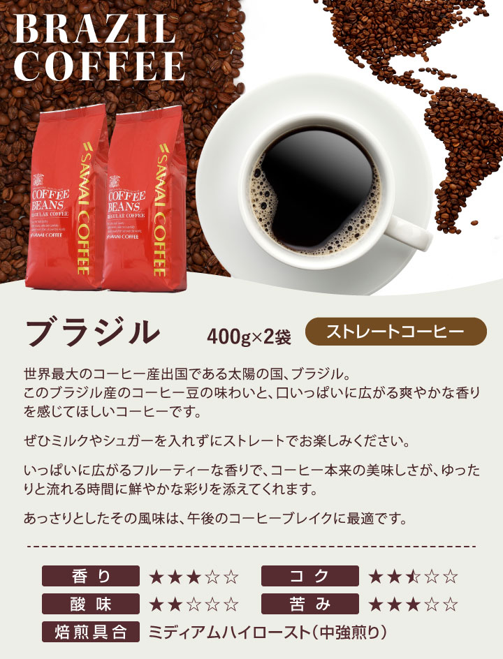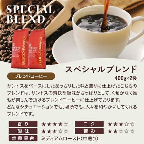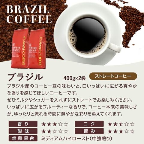 | 内容量 | ・ブラジル 400g×2袋 ・スペシャルブレンド 400g×2袋 |