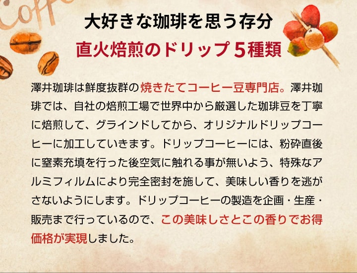 送料無料 1000円ポッキリ ドリップバッグ コーヒー 珈琲 "濃厚ビター派に贈るドリップパック。深煎り5種飲み比べ" 澤井珈琲 ドリップコーヒー 厳選5種 10袋 飲み比べセット 手軽 本格