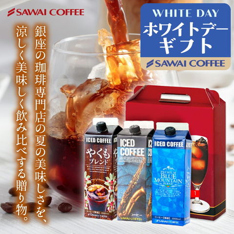 ホワイトデー コーヒーギフト ギフト アイスコーヒー ギフト 無糖 3種 3本 セット 澤井珈琲 珈琲 1000ml 特選オリジナル ブルーマウンテン やくもブレンド ギフトセット プレゼント 内祝い プレゼント ギフトセット 贈答品