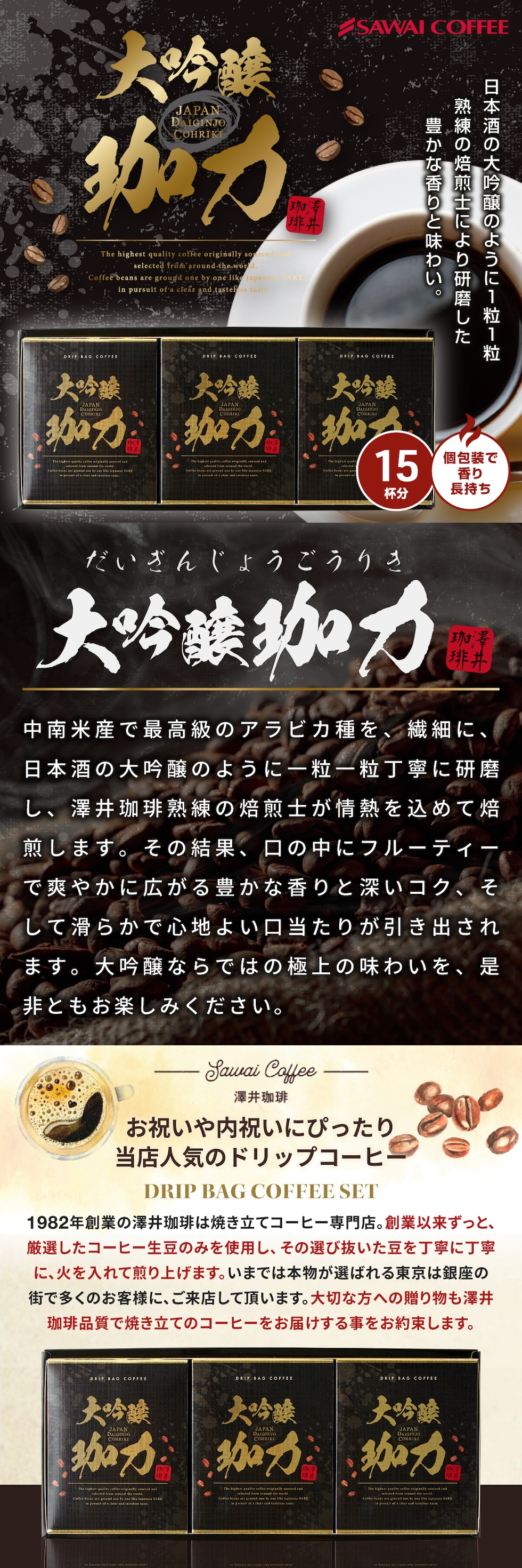 お歳暮 コーヒーギフト コーヒー ギフト ドリップバッグ ギフト ドリップコーヒー ドリップバッグコーヒー ドリップパックコーヒー 珈琲 プレゼント 挨拶 手土産 お礼 ギフトセット プレゼント 大吟醸珈琲ギフト 澤井珈琲 内祝い プレゼント ギフトセット 贈答品 御歳暮 冬ギフト