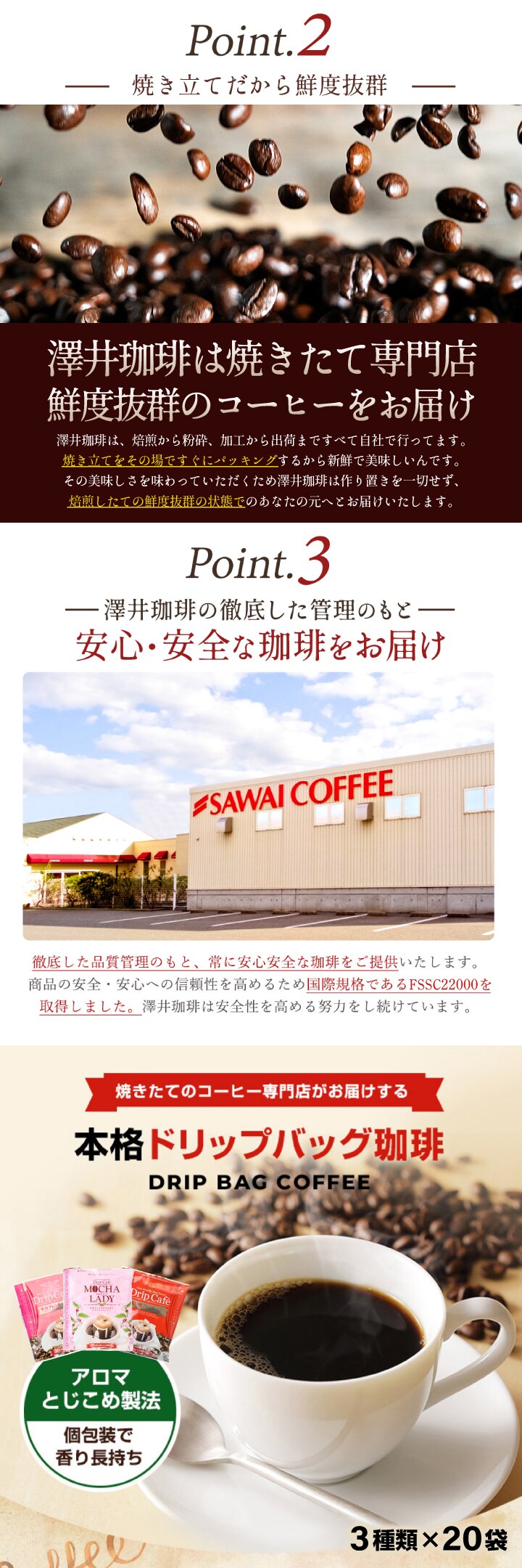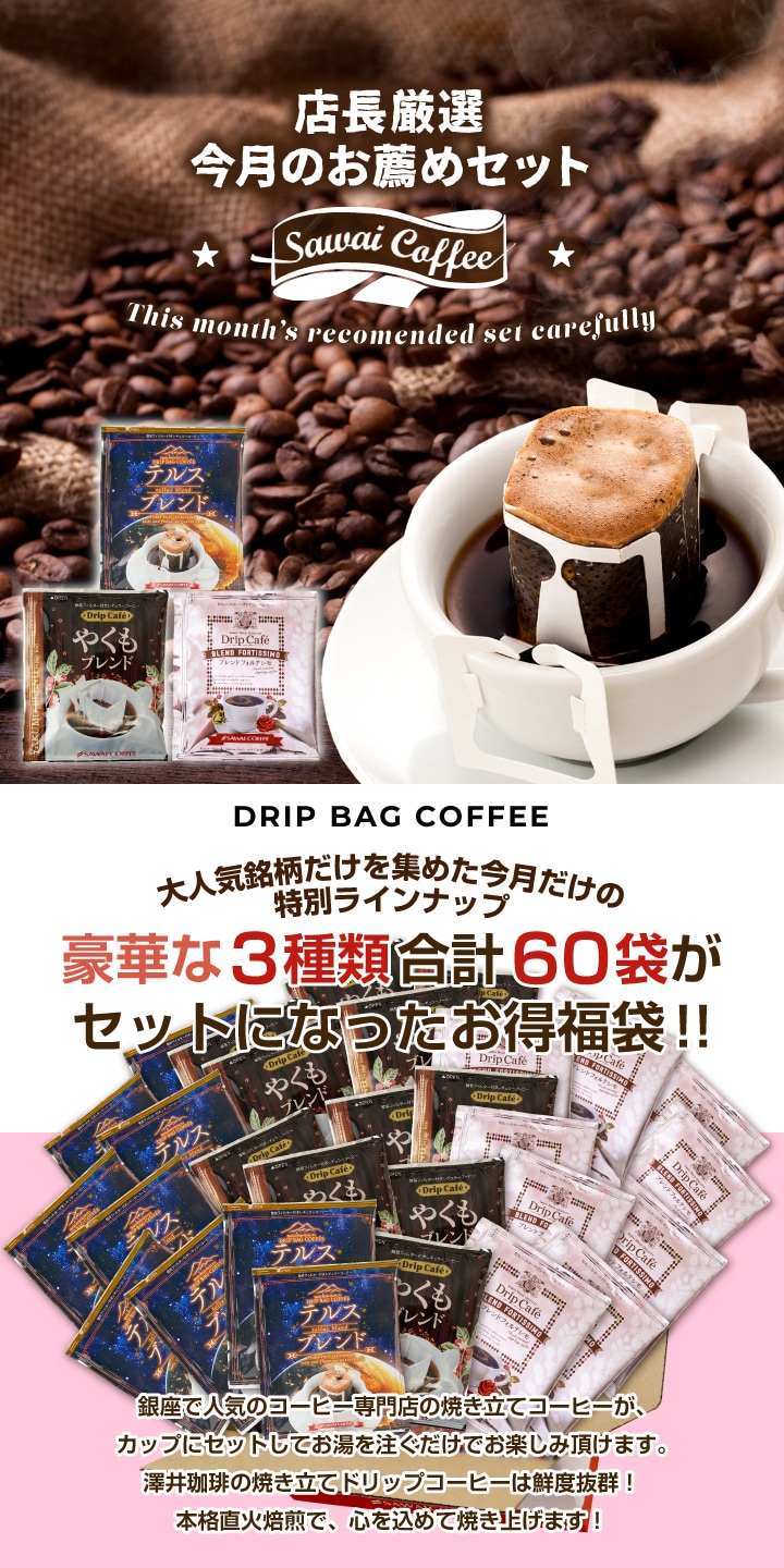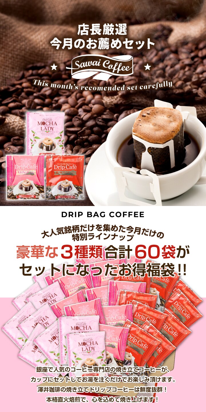 鮮度抜群 ドリップコーヒー 珈琲 ドリップパック 送料無料 コーヒー 福袋 ドリップバッグ 20袋×3種 個包装 飲み比べ セット 4月のおすすめドリップバッグ福袋 60杯分 澤井珈琲