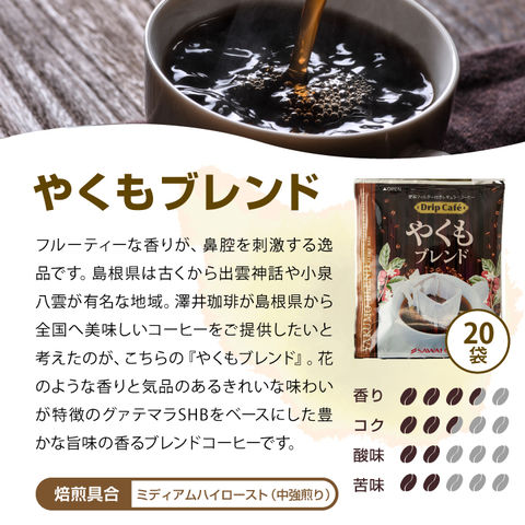 ・アニバーサリーブレンド 8g×20袋 ・やくもブレンド 8g×20袋 ・テルスブレンド 8g×20袋 |