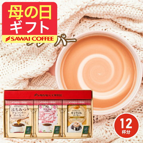 母の日ギフト コーヒーギフト コーヒー ギフト フレーバーコーヒー ドリップバッグ コーヒー ドリップパック 珈琲 個包装 8g 澤井珈琲 3種 セット キャラメル はちみつ ローズブレンド 12杯 詰め合わせ ママ ギフトセット プレゼント 内祝い プレゼント ギフトセット 贈答品