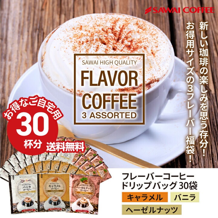 ドリップコーヒー フレーバーコーヒードリップパック 送料無料 コーヒー お試し 福袋 30杯分 個包装 8g 飲み比べ キャラメル バニラ ヘーゼルナッツ 澤井珈琲